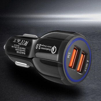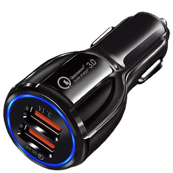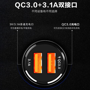 迪加伦车载USB充电器QC3.0快充双口输出点烟器一拖二汽车电源转换器头