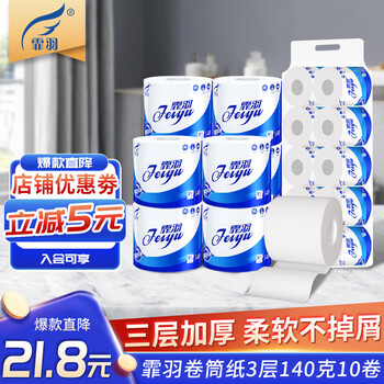 霏羽 卷筒纸卫生纸3层140克*10卷手纸厕纸有芯厕纸家用卷纸巾4027-B