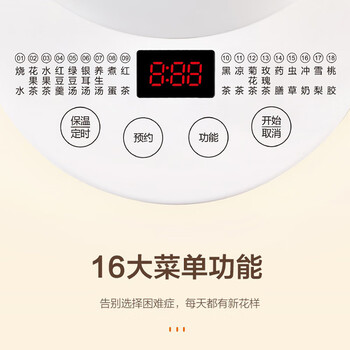 苏泊尔(SUPOR)ZMD安心系列 16大菜单功能 800W大功率 5段调温 高硼硅 24小时预约 1.5l容量 养生壶SW-15Y19