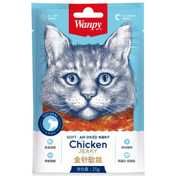 顽皮(Wanpy)猫零食 鸡肉金针软丝300g(25g*12袋) 成猫宠物猫咪零食