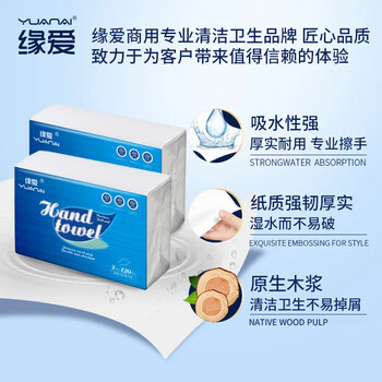 缘爱商用擦手纸单层120抽*20包 加厚强韧吸水吸油干手抹手纸抽纸 整箱