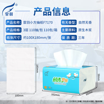霏羽小方抽纸3层110抽*110包商用酒店火锅店面巾纸餐巾纸整箱F7170