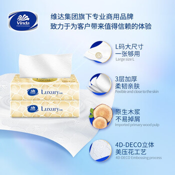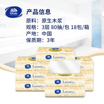 维达(Vinda) 抽纸 3层80抽*18包 棉韧立体美Luxury铂臻系列 L码天然无香 酒店客房餐厅面巾纸 整箱销售
