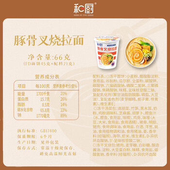 和厨 豚骨叉烧面 66g*6杯整箱装