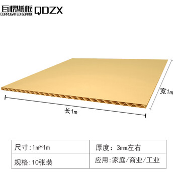 QDZX搬家纸箱牛皮纸板收纳盒猫窝瓦楞纸板厚隔板三层1m*1m*10张