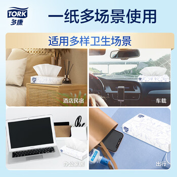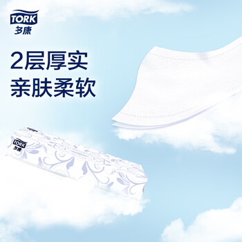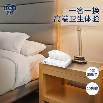 多康Tork 抽纸 2层80抽*100包(大规格)酒店客房便携车载软抽纸巾天然无香 (整箱销售)