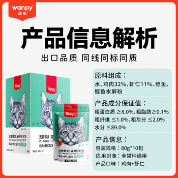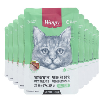 顽皮(Wanpy)猫零食鸡肉虾仁鲜封包800g(80g*10包)猫湿粮成幼猫咪零食
