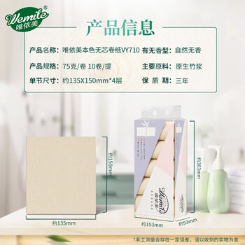 唯依美无芯卷纸4层75克*10卷卫生纸家用厕纸加厚纸巾手纸 整提VY710