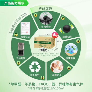 绿驰 6kg活性炭新房装修急入住去除甲醛清除剂汽车吸异味苯tvoc竹碳包