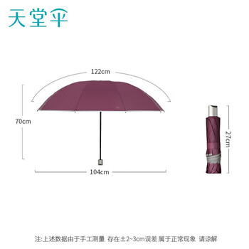 天堂 男/女雨伞三折 全钢双人大号商务雨伞反光条伞 暗红紫
