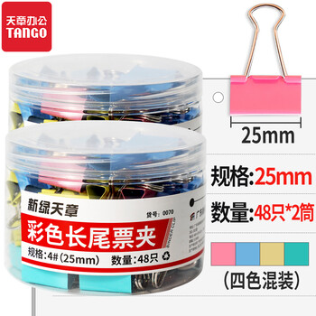 天章(TANGO)长尾夹燕尾夹子凤尾夹票夹反尾夹票据夹子4#25MM彩色金属 48个/筒*2筒装 办公用品