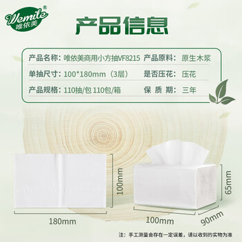 唯依美小方抽纸3层110抽*110包商用方巾纸酒店餐饮饭店餐巾纸整箱VF8215