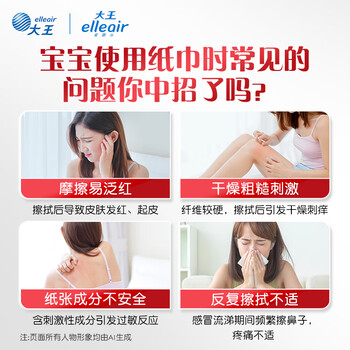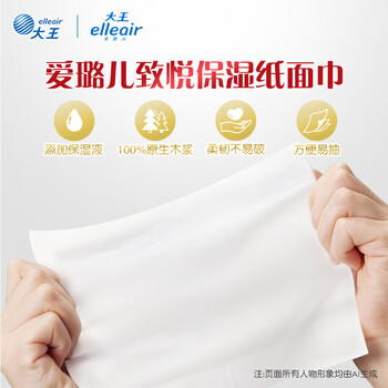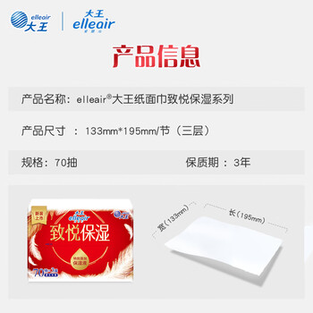elleair大王致悦保湿纸柔纸巾云柔巾乳霜纸含甘油适用敏感肌3层70抽*6包