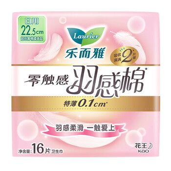 花王乐而雅(Laurier)零触感羽感棉超丝薄22.5cm护翼型卫生巾16片*1