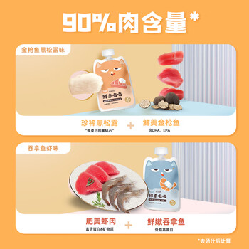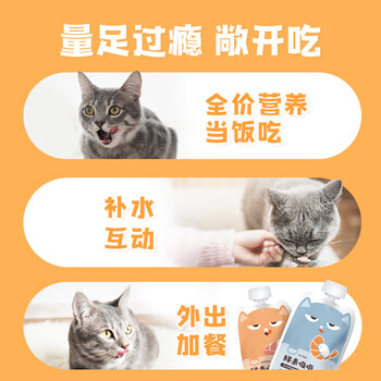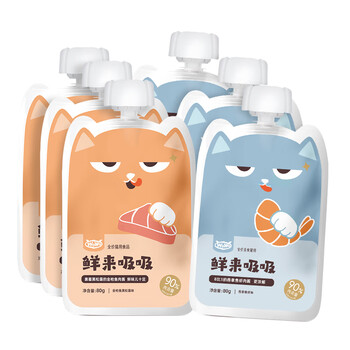 宠物生活---猫食品---猫零食---猫零食湿粮包喔喔(WOWO)WoWo喔喔 鲜来吸吸(2种口味)共6袋套装