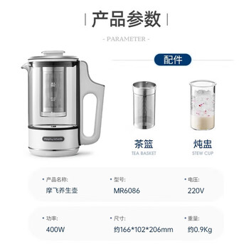 摩飞电器(Morphyrichards)全自动养生壶 便携煮茶器 办公室多功能烧水壶养生杯煮茶壶热水壶 MR6086 椰奶白