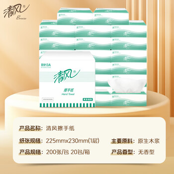 清风抽纸 擦手纸单层200张*20包 酒店商场洗手间厕所整箱批发商务专用