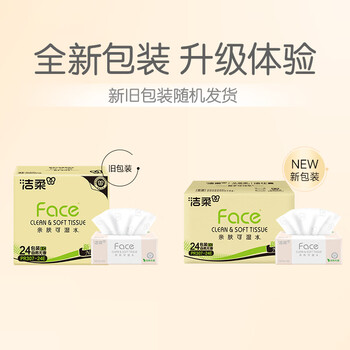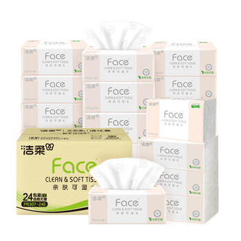 洁柔抽纸 粉Face柔韧3层120抽*24包 可湿水 原生木浆面巾纸 整箱纸巾