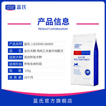 蓝氏LEGENDSANDY京东特供多肉蔬菜全犬粮15kg*1袋