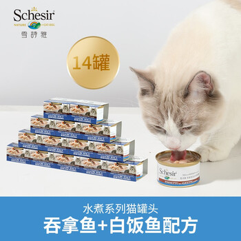 雪诗雅 猫罐头吞拿鱼加白饭鱼全年龄段湿粮罐头 水煮系列 85g*14罐装