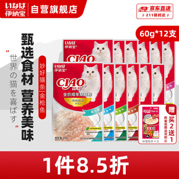 伊纳宝猫零食妙好湿粮包金枪鱼味60g*12包