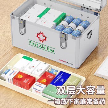 优必利多功能医药箱铝合金边框中型急救药品应急箱16英寸多层出诊箱9633