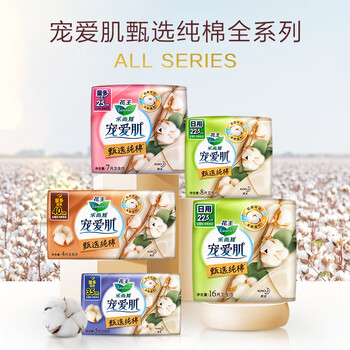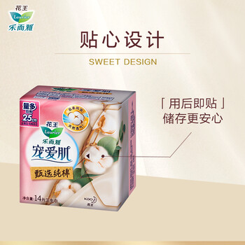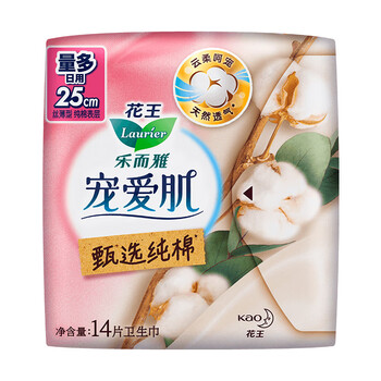乐而雅花王宠爱肌甄选纯棉丝薄护翼型日用卫生巾25cm14片姨妈巾京东自营