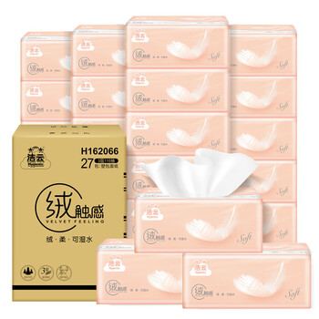 洁云抽纸 绒触感3层110抽*27包 面巾纸整箱 可湿水S码纸巾 软抽餐巾纸