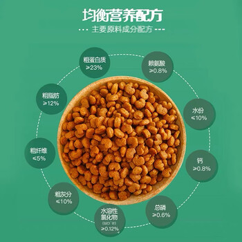 大米,肉类及其制品(鸡肉粉、鸡油、鸡肝泥、鸡肉),豆粕、宠物饲料复合调味料,甜菜粕颗粒,大豆磷脂油粉,鲑鱼,胡萝卜粉,芹菜,鱼油,青海苔粉,绿贻贝粉丝兰粉。
