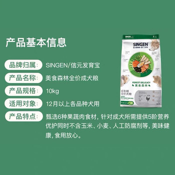 信元发育宝(SINGEN)美食森林全价成犬专用粮10kg中大型犬边牧哈士奇通用型狗粮DD23