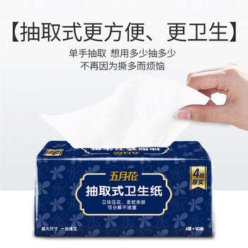 五月花(May Flower)卫生纸 4层90抽*18包抽取式厕所用纸易溶水可直接冲马桶 整箱售