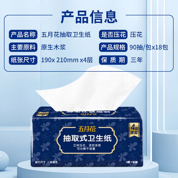 五月花(May Flower) 抽取式卫生纸 4层90抽*18包(整箱销售)