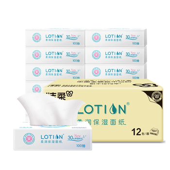 洁柔乳霜纸 Lotion3层100抽*12包 保湿抽纸 亲肤云柔巾 婴儿纸巾整箱