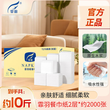 霏羽餐巾纸10斤整箱方巾纸270*270双层酒店餐饮饭店用纸巾T270
