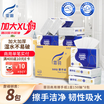 霏羽擦手纸1层150抽*8包加厚型商用酒店抹手纸厨房用纸整箱纸巾CS009
