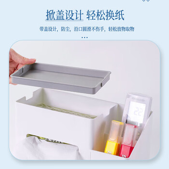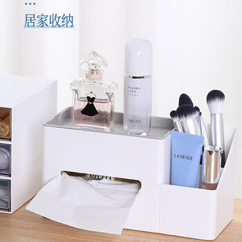 齐心(Comix)简约纸巾盒创意北欧家用客厅茶几餐巾抽纸盒带多功能收纳收纳盒桌面244*102*132mm 象牙白B2277