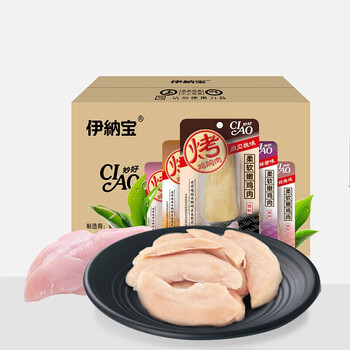宠物生活---猫食品---猫零食---猫蒸煮肉条/肉块伊纳宝妙好烤鸡胸肉混合口味48包整箱