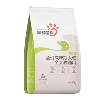 醇粹爱你狗粮 全价全犬种成犬 鸡肉牛肉双拼配方柯基金毛通用粮10kg