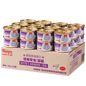 顽皮(Wanpy)泰国进口 猫罐头85g*24罐 白身吞拿鱼+鲣鱼罐头(汤汁型) 成猫零食