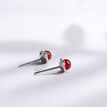 石头记(istone)红玛瑙耳钉小圆珠耳饰S925银新中式生日礼物送女友