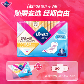 Libresse薇尔 迷你卫生巾极薄棉柔 V感系列190mm*22片--呵护经期前后安心自在-薇尔小V巾
