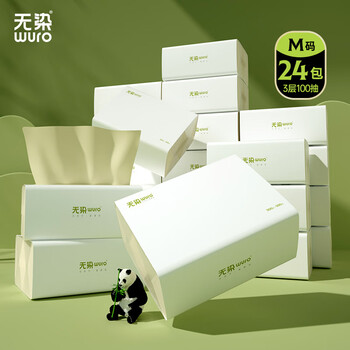 无染wuro本色抽纸 竹浆纸3层100抽*24包M码 纸巾卫生纸餐巾纸面巾纸整箱