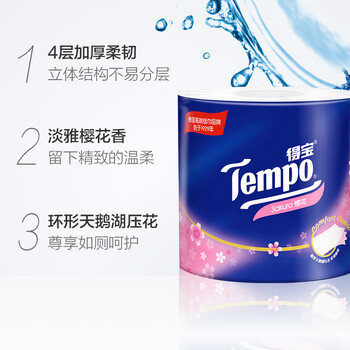 得宝(Tempo) 卷纸 4层*160g*10卷 有芯卷筒卫生纸纸巾 樱花香味