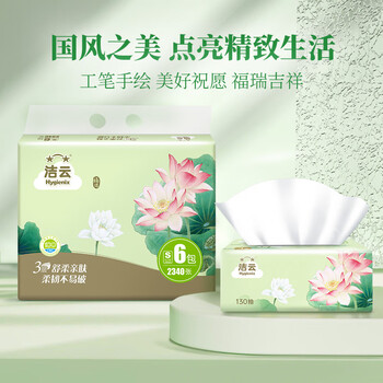 洁云 抽纸 福瑞国色3层130抽*6包 面巾纸餐巾纸抽卫生纸S码原生木浆