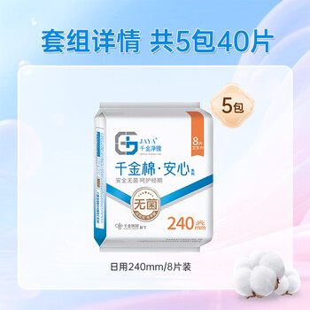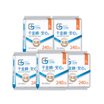 千金净雅安心纯棉透气日用组合卫生巾240mm*8片*5包40片京东自营消毒级