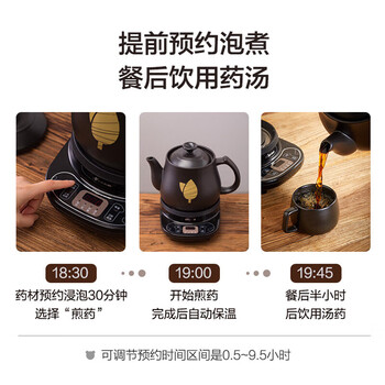 小熊(Bear)煎药壶 全自动中药锅4L大容量分体式陶瓷电熬药养生壶中药煲药罐电药砂锅 JYH-C40D2 黑色