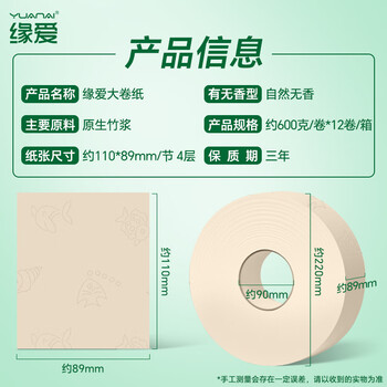 缘爱 本色大卷纸4层600g*12卷