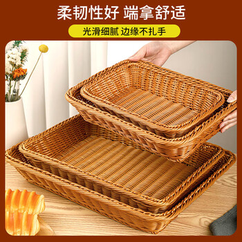 巢极佳品仿藤编收纳筐大号长方形编织篮水果篮面包篮桌面零食储物筐展示筐