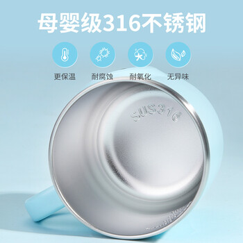 史努比(SNOOPY)儿童宝宝家用316不锈钢幼儿园防摔居家单柄学饮小口牛奶喝水杯子