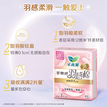 乐而雅零触感羽感棉超丝薄25cm护翼型卫生巾7片*1包